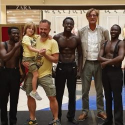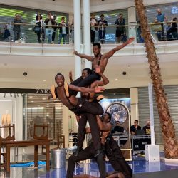 Una straordinaria performance di forza, eleganza, agilità e ritmo: sabato 28 settembre 2019 i Black Blues Brothers hanno inaugurato davanti a centinaia di persone, con uno show spettacolare e divertente al tempo stesso, la rassegna Be Show, organizzata da Le Befane Shopping Centre di Rimini. In piazza Zara, in uno spazio costruito apposta per rendere possibili le loro evoluzioni, sulle trascinanti note delle canzoni dei Blues Brothers, Kevin, Michael, Norris, Dennis, Sylvester (“i magnifici cinque”, come sono stati definiti dal critico teatrale del Corriere dela Sera, Franco Cordelli) hanno messo in scena acrobazie con una forte componente musical e comica, tra piramidi umane, salti acrobatici con la corda e in due cerchi e molto altro ancora. Coinvolgendo gli spettatori e lasciandoli, al tempo stesso, a bocca aperta. E meritandosi tantissimi applausi.