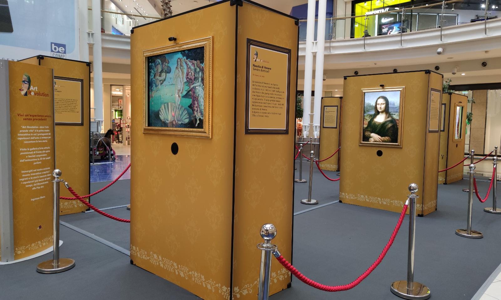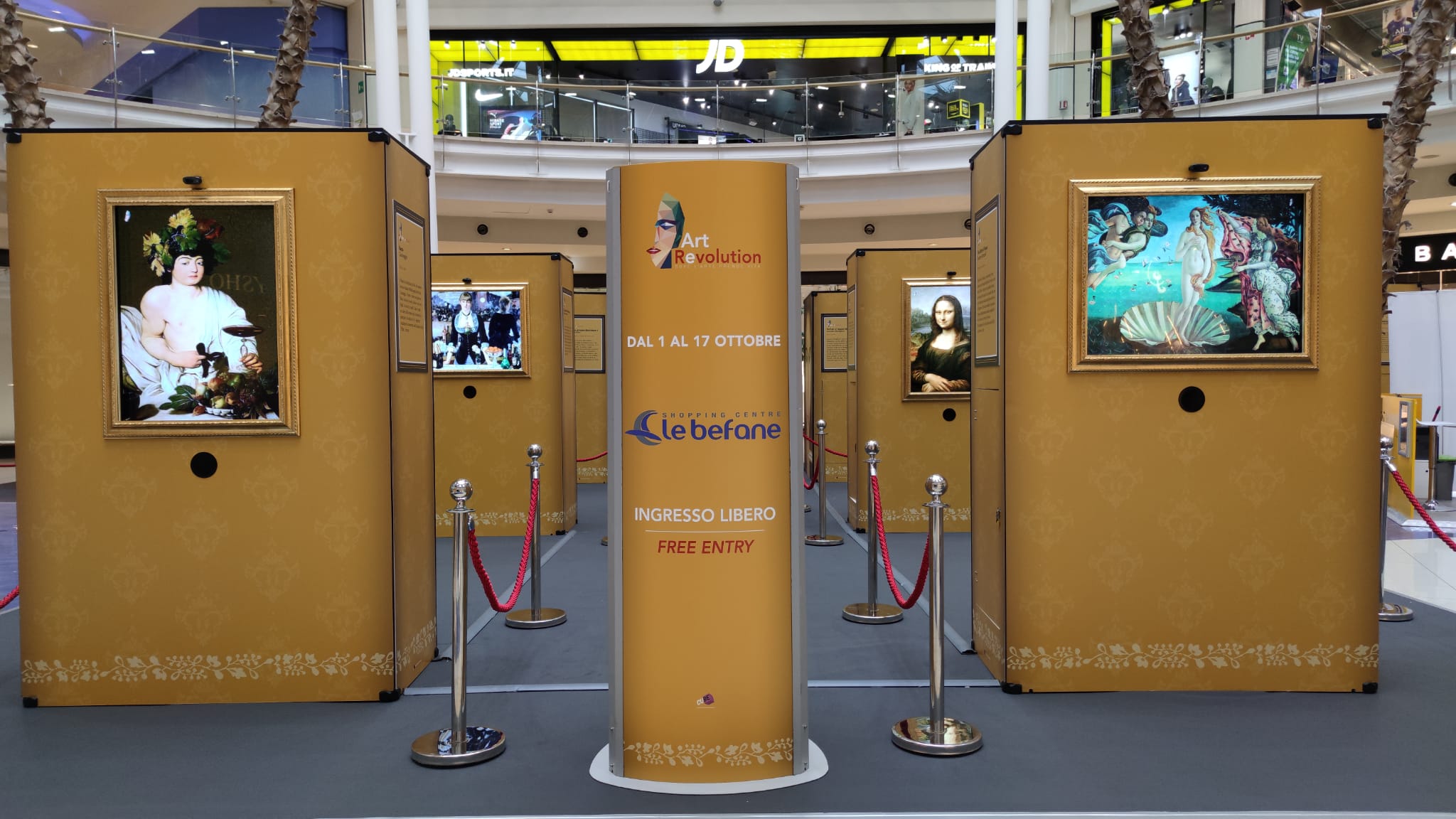 “Art rEvolution”, ideata e prodotta da Cube Comunicazione, rappresenta l’evoluzione del concetto di museo e propone al pubblico un suggestivo percorso che attraversa oltre cinque secoli di storia dell’arte, dal Rinascimento alla Pop Art. In mostra i visitatori de Le Befane incontreranno e potranno ascoltare le storie de: La nascita di Venere di Sandro Botticelli, Gioconda di Leonardo da Vinci, Bacco di Caravaggio, Il bar delle Folies-Bergère di Edouard Manet, Autoritratto di Van Gogh, L’urlo di Munch, Adele Block-Bauer I di Klimt, Jeanne Hébuterne di Modigliani, American Gothic di Grant Wood, Shot Marilyns di Warhol
