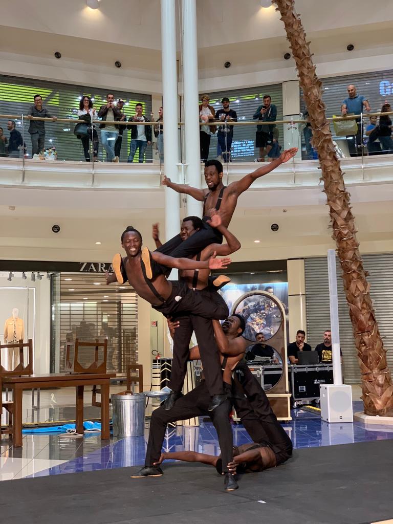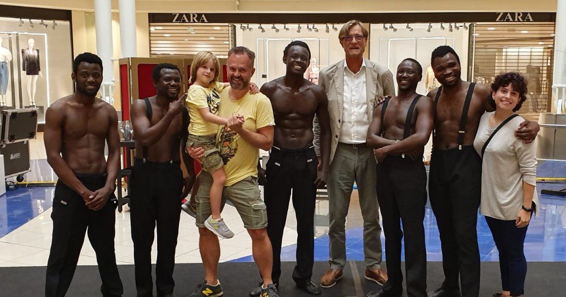 Una straordinaria performance di forza, eleganza, agilità e ritmo: sabato 28 settembre 2019 i Black Blues Brothers hanno inaugurato davanti a centinaia di persone, con uno show spettacolare e divertente al tempo stesso, la rassegna Be Show, organizzata da Le Befane Shopping Centre di Rimini. In piazza Zara, in uno spazio costruito apposta per rendere possibili le loro evoluzioni, sulle trascinanti note delle canzoni dei Blues Brothers, Kevin, Michael, Norris, Dennis, Sylvester (“i magnifici cinque”, come sono stati definiti dal critico teatrale del Corriere dela Sera, Franco Cordelli) hanno messo in scena acrobazie con una forte componente musical e comica, tra piramidi umane, salti acrobatici con la corda e in due cerchi e molto altro ancora. Coinvolgendo gli spettatori e lasciandoli, al tempo stesso, a bocca aperta. E meritandosi tantissimi applausi.