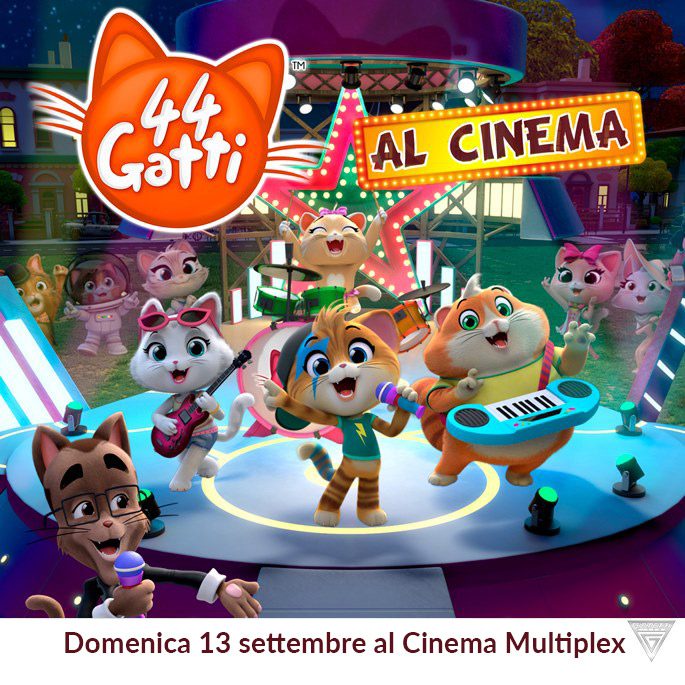 Il 12 e 13 settembre 2020 i nuovi episodi di 44 Gatti, mai visti in TV, vi aspettano nei cinema Giometti per tanto divertimento, sorprese miciovigliose e un nuovo amico micio davvero speciale… Gattocarlo, il gatto presentatore!